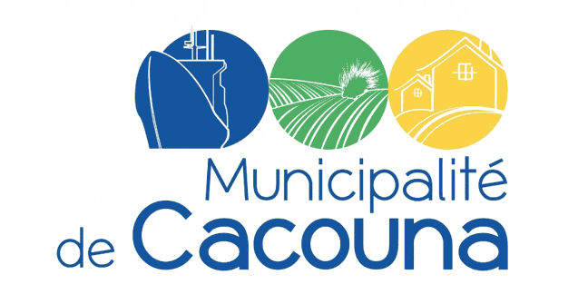 The flag of the Municipality of Cacouna in MRC Riviere-du-Loup, Quebec, is white with its logo on it: