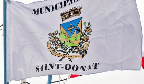 The flag of the Parish Municipality of Saint-Donat in MRC La Mitis, Quebec,