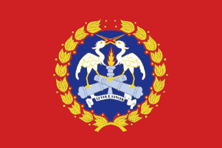 The flag of the Armed Forces is a red flag with the emblem of the Armed
