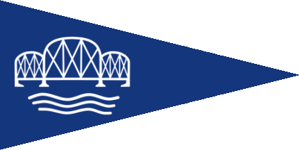 The pennant is blue with a white bridge over three white wavy lines all shifted to hoist.