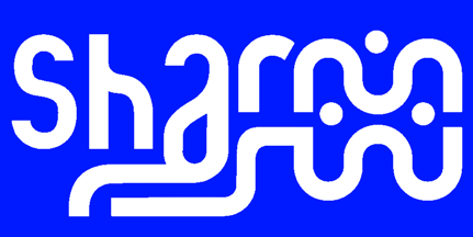 For some clarification, the slogan-image on this flag has an intermixing of "Sharm" in English on the top, and "Sharm" in Arabic [which is read right-to-left" as (mrahs) شرم ] on the bottom; particularly where the English "a" is modified as an "m" [ م ] in Arabic, and at the right the English "m" becomes intermixed with the three-dot "s" [ش] of Arabic – sort of an artistic upside-down "mirror image" of the two different letters – pretty "cool looking" once one understands what is intermixing in this artwork! The wording of "El Sheikh" itself does not appear on this flag.