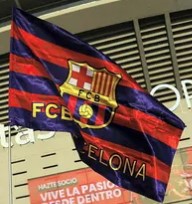 The flag I spotted in Tenerife had a white inscription superimposing the two bottom stripes: "FC BARCELONA." But I believe that this was a supporters version.