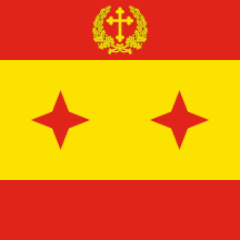 In a letter dated January 2000, Cdte. Manzano of the Spanish Navy tells me of a flag project for the General Jefe del Estado Mayor de la Defensa: tricolour 1:1 with blue defence coat-of-arms in upper red stripe, four blue 4-pointed stars in middle yellow stripe, blue 5-pointed star in lower red stripe.