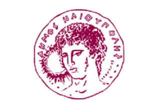 The flag of Ilioupoli (Kokkonis website) is blue with the municipal seal placed on a white disk in the middle.