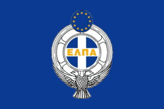 The flags of the Automobile and Touring Club of Greece are blue with the club's emblem in the center.