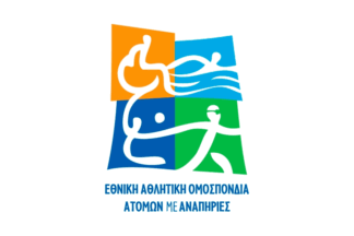 The flags of the Hellenic Sports Federation for Persons with Disabilities are white with the federation's emblem in the center.