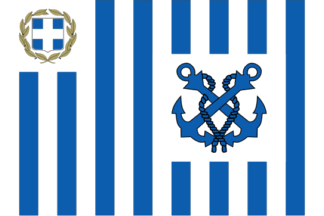 The flag of the Hellenic Coast Guard is similar to the Greek national flag, but with two yellow anchors crossed per saltire placed in the middle of the canton. The flag is shown on the Ministry of Mercantile Marine website; unfortunately there is no English counterpart of the Greek page, which seems to indicate that the flag was adopted on 21 March 1964. The flag photographied on the website has a golden fringe, not shown on the attached image.