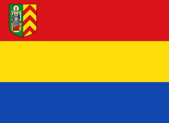 red, yellow, and blue, with the municipal coat of arms on the red stripe near