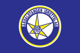 The flag of Årdalstangen IL (Årdalstangen IL ) from Årdalstangen in Årdal Municipality is blue with the badge centered.