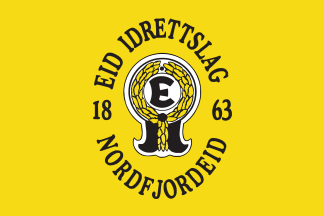 The flag of Eid IL (Eid Idrettslag) from Nordfjordeid in Stad Municipality is yellow with the badge centered.