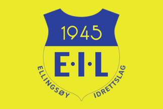 The flag of Ellingsøy IL (Ellingsøy Idrettslag) from Hovland on Ellingsøya Island in Ålesund Municipality is yellow with the logo centered.
