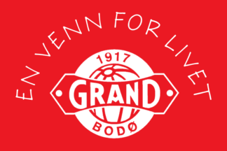 The flags of IK Grand Bodø (Idrettsklubben Grand Bodø) from Bodø are red with the badge centered.