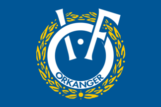 The flags of Orkanger IF (Orkanger Idrettsforening) from Orkanger in Orkland
