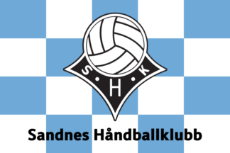 The flags of Sandnes HK (Sandnes Håndballklubb) from Sandnes are blue or chequered blue and white with the badge centered.