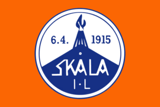 The flag of Skåla IL (Skåla Idrettslag) from Hovdenakken in Molde Municipality is orange with the badge centered.