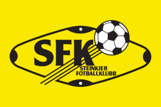 The flags of Steinkjer FK (Steinkjer Fotballklubb) from Steinkjer are yellow with the logo centered.