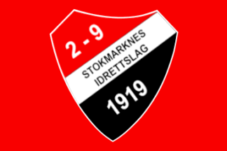 The flags of Stokmarknes IL (Stokmarknes Idrettslag) from Stokmarknes in Hadsel Municipality are red or white with the badge centered.
