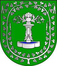 Shield Vert a fountain Argent and in orle beanstalk blooming Argent.