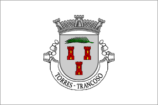 Mural crown Argent with three visible towers (village rank) and white scroll reading in black upper case serifed letters "TORRES - TRANCOSO".