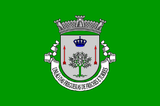 It is a typical Portuguese communal flag, with the coat of arms centred on a plain field of unknown colour.