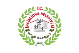 The flag of İncirliova (photo) is white with the municipality's emblem in the middle. "Belediyesi" means "Municipality".