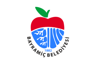 The flag of Bayramiç (photo) is white with the municipality's emblem. "Belediyesi" means " Municipality".