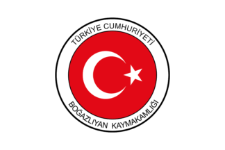 The flag of Boğazlıyan (photo) is white with the municipality's emblem. "Belediye Başkanlığı" means "Municipality Presidency". The former flag of Boğazlıyan was white with the municipality's former emblem.
