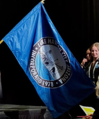 The flag of Lake Havasu City as seen here in a video at
