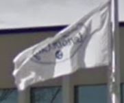 The flag is a blue field with the city logo in the center. According to google streetview, the flag was adopted some time between 2021 and 2018.