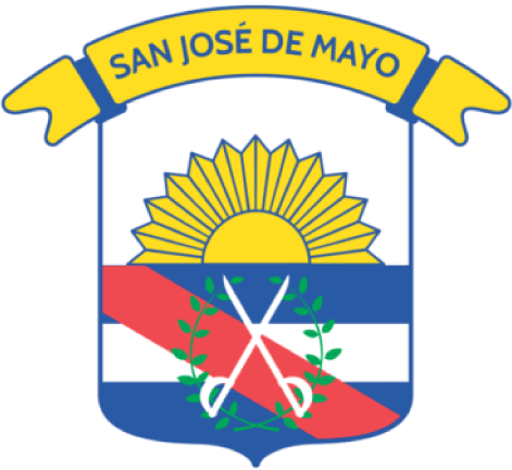 The coat of arms was adopted officially on 19 October 1926, being approved by the departmental council. It was designed by council deputy Ricardo A. Gómez Gavazzo, who presented it before the council. Of a shield outlined in blue, it has a ribbon above in gold reading SAN JOSÉ DE MAYO as the capital city; the shield is divided horizontally into two halves. The upper half depicts the sun rising over a white field, with the lower half depicting the flag of Artigas (blue-white-blue with red diagonal band from top-left to bottom-right). Clearly, it is the Sun of May rising over the ocean (the Rio de la Plata). Above the flag of Artigas, two laurel branches with two crossed white swords are seen, signifying the victories of the cause under Artigas.