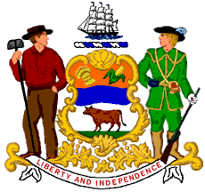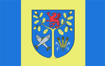 Flag and Arms of Delaware, USA; Flag of Białogard Rural District, Poland