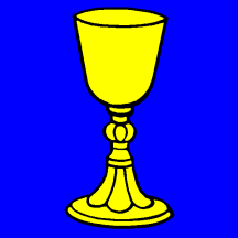 A ceremonial cup usually in some precious metal, occasionally covered or shown with a communion wafer, and used in most forms of Christian worship – but see the note below.