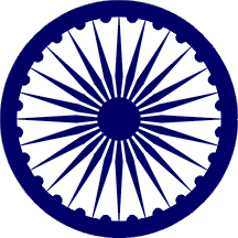 A wheel-like emblem that represents the Buddhist Dharma Chakra (or wheel of law) and which appears in a variety of different designs on the national flag of India, the military flags of Thailand and several other flags both past and present – an ashoka chakra (see also Buddhist flag).