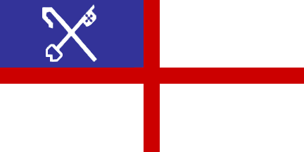 2) In UK usage and some others, the flag flown from or outside a church; particularly that flown from an Established (or Anglican) Church defaced with the appropriate diocesan arms.