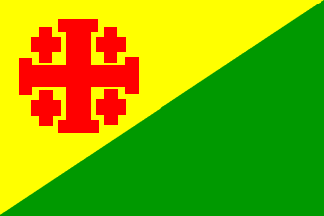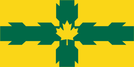 flag, canton or panel, whose arms are generally (but not exclusively) flat-ended but which are wider at