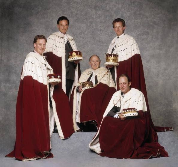 b) Mantles may still be seen in the parliamentary and state robes worn by British peers (which are graded according to rank) – see "mantled 2)" (below).