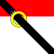 b) At the time of writing it is unclear as to whether the flag having a straight-sided but angled fly (as illustrated below) should be considered as “engrailed“ or “stepped“ – see engrailed fly.