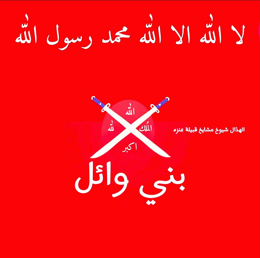 I found flags with the name "Bani Wa'il" written in white on red background. I also found a "banner of the tribe of Annazah" ( https://en.wikipedia.org/wiki/File:Banner_of_Annazah.png) and "Anezah" ( https://commons.wikimedia.org/wiki/File:The_Banner_or_flag_or_the_Arabian_Tribe_Anezah.jpg), with "Bani Wa'il" written on it, beside the inscription "There is no god but God, Muhammad is the Messenger of God" but no mention of Anizah.