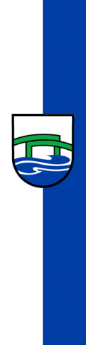 The coat of arms was granted on 24 May 2007; it is found in State Official Gazette Resolution No. 305 of the same year. At the same time, the state government granted its silver-blue-green colors. Banner and flag adoption date unknown; it uses the colors: white and blue. Blazon as translated: "In silver, on a shield base covered with three blue waves, a green bridge broken by a right step, adjoining." The bridge is probably for the entrance to the town.