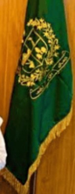 The flag was probably adopted in 2009 or 2010, considering the fact it received self-governance status in August 2009. Perhaps intentionally, it has the same format as the National Emblem excluding its quadrants. All details are in green. Surrounding the main emblem is a wreath of jasmine as the national flower; underneath is a ribbon appearing to read the national motto of "Faith, Unity, Discipline". Above the shield is a star and crescent for the national religion. The top-left depicts: a goat over a tower signifying the environment and victory (likely it does not represent a specific tower, but if there is it would probably be the Taj Mughal monument). The upper-right section depicts two tall mountains, showing the Himalayas it is found in. The lower-left section depicts three trees for the Himalayan cedar as its flora. Finally, the lower-right section depicts a symbol of its fauna: the Markhor goat, national animal which is found more in this region.