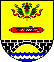Shield Or a weaver´s shuttle Gules in fess with yarns Argent, on chief a corn cob Gules leafed Vert between two rye ears Vert, all tied Gules,