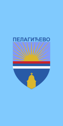 - In the lower part of the coat of arms is the tower of the Serb Orthodox church coloured yellow designating the national and religious identity of the region. - Above the shield is inscribed the name Pelagićevo in printed letters in Cyrillic script, coloured blue.
