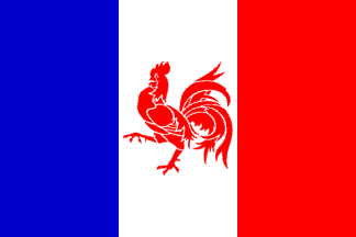 The Mouvement Wallon pour le Retour à la France created in 1986 a flag made of the Tricolore French national flag with the red Walloon rooster in the middle of the white stripe. The flag was later used by the rattachiste party F.R.A.N.C.E..