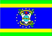 Horizontally banded, green-yellow-blue-yellow-green, in a ratio approximately 1:1:6:1:1, with the municipal arms in the center of the blue stripe.