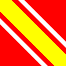 Argent, a Chief Gules, overall on a Bend Sable three Mullets of Five Or.