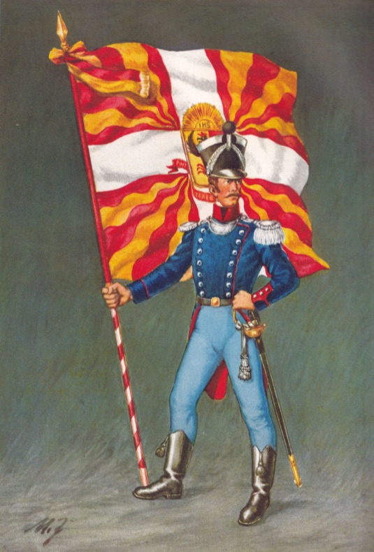 a (baroque) shield in the centre of the flag. These decorative flags had been used until WWII and then