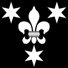 Sable a Fleur de lis Argent between three Mullets two and one of the same.