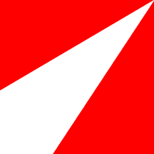 Gules a Pile in bend sinister Argent issuing from dexter base.