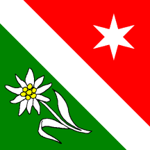 Divided by a Bend Argent, Gules a Mullet [of Six] of the First and Vert an