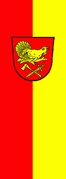 It is a red-yellow vertical bicolour. The coat of arms is shifted to the top.